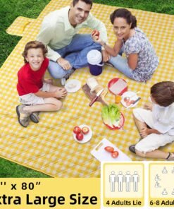 Extra Large Picnic Outdoor Blanket, 80”x80” Waterproof Foldable Blankets Gingham Picnic Mat for Beach, Camping Grass Lawn Park Accessories Cute Couple Gifts Ideas Wedding Registry