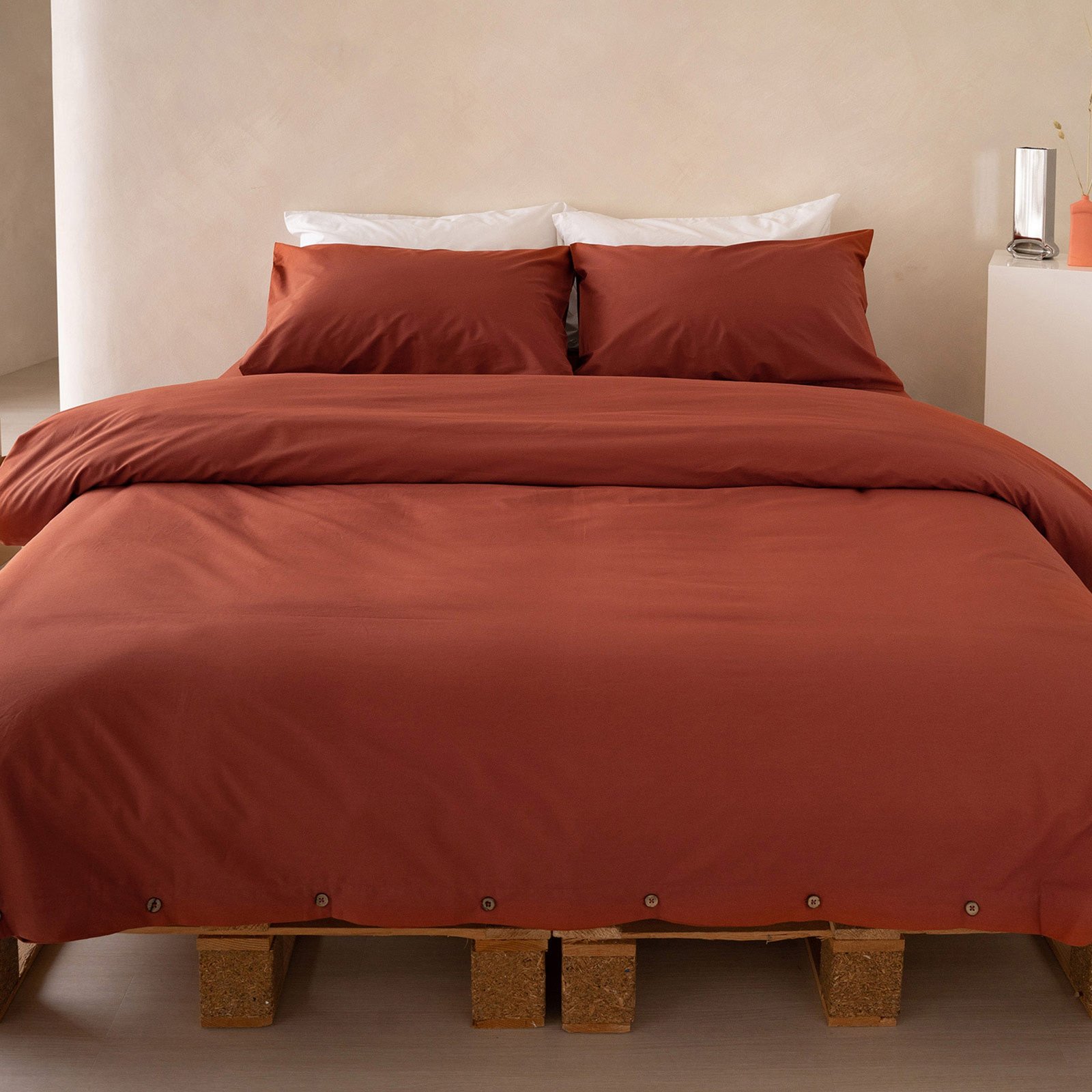 Beautifully structured with a Crisp Percale cotton feel. these duvet covers are cooling and have a soothing rustle. just like your best hotel stays. Better yet. they’re made ethically from GOTS-certified organic cotton and feature wooden button closures for that added touch of natural luxury.